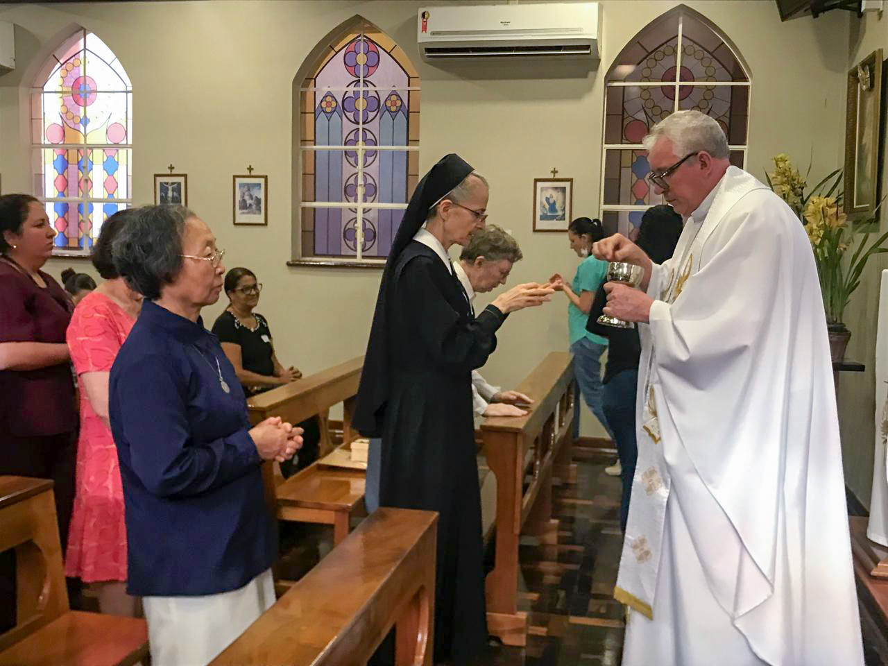 Em sua homilia, dom Geremias falou sobre a importância do serviço missionário realizado nos hospitais, especialmente do trabalho realizado pelo padre Silvio nesses anos e também da atuação das irmãs na Santa Casa, que leva consolo e alívio aos que ali estão internados. O arcebispo partilhou que quando está em outras dioceses, escuta relatos de pessoas que estiveram internadas na Santa Casa e receberam assistência religiosa e os sacramentos e são muito agradecidas.