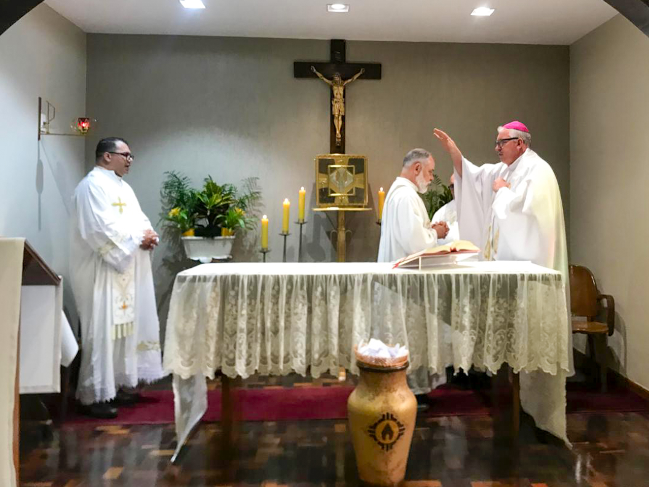 O arcebispo dom Geremias Steinmetz presidiu, no dia primeiro de outubro, Missa na Santa Casa de Londrina, com a presença das irmãs Maria de Schoenstatt e da comunidade. A celebração teve como intenção a ação de graças pelo trabalho que o padre Silvio César Pinto realizou nos últimos seis anos como capelão e a acolhida aos novos capelães do hospital: o padre João Adão Andrade, pároco da Paróquia Nossa Senhora da Luz, e o padre Josias Romero, vigário da Paróquia Santa Cruz. A partir de então, padre Silvio se dedicará exclusivamente ao trabalho no Lar Sacerdotal.