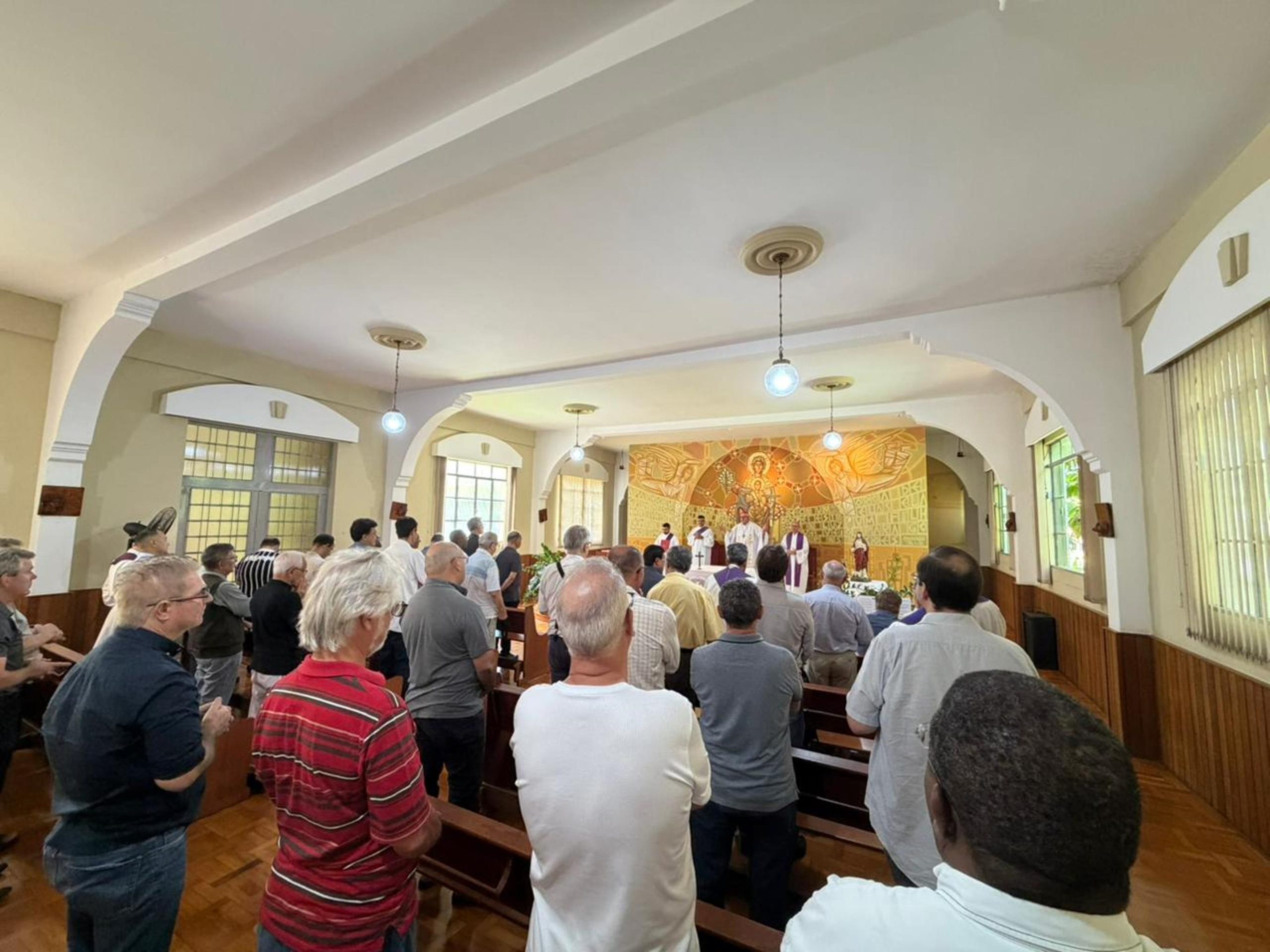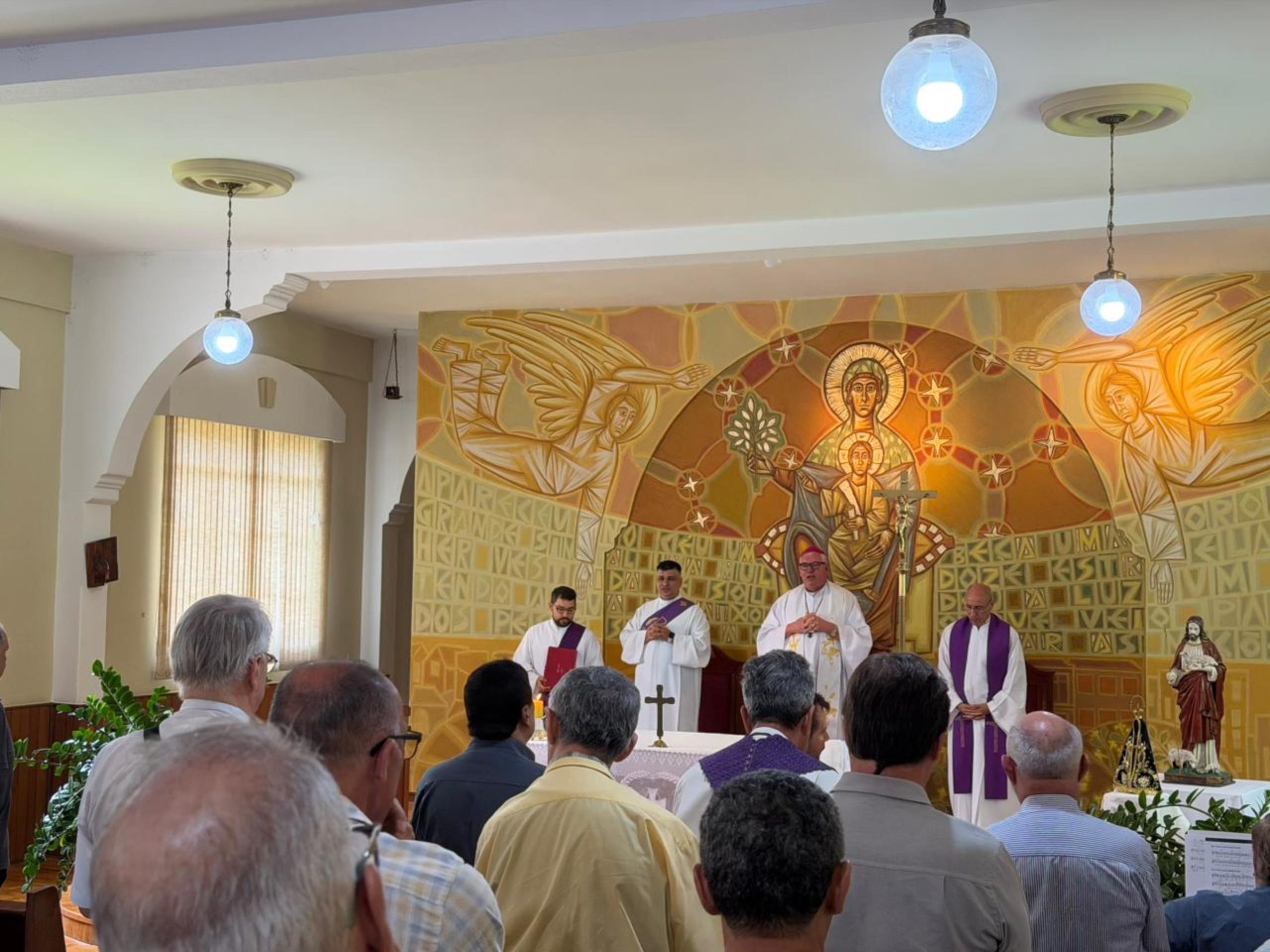 Após o momento de espiritualidade, foi celebrada a Santa Missa, presidida por dom Geremias Steinmetz, e, em seguida, um almoço festivo reuniu todo o clero. Ao final, cada sacerdote recebeu de presente um panetone.