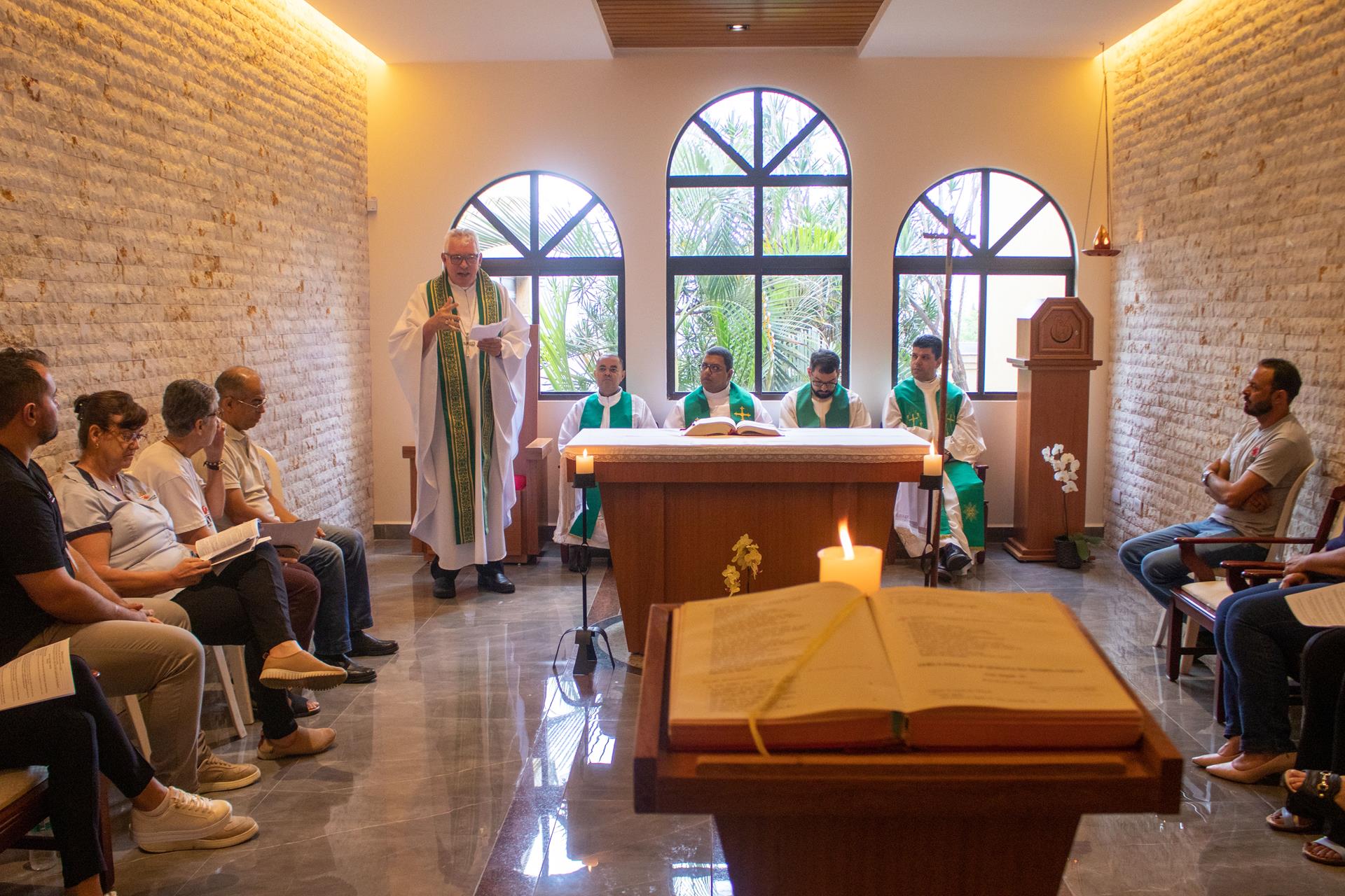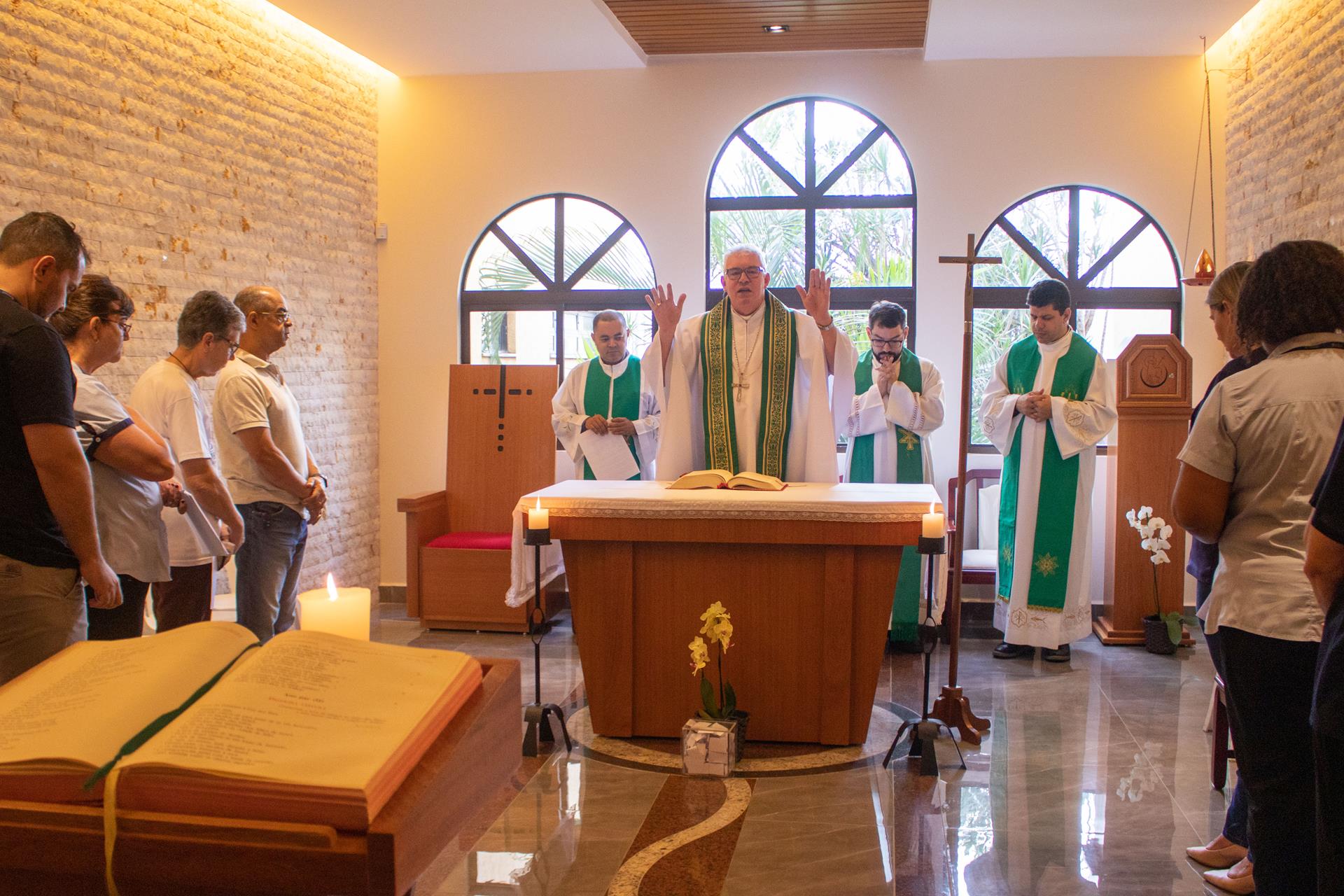 Na manhã desta segunda-feira, 9 de fevereiro, o arcebispo dom Geremias Steinmetz celebrou uma Santa Missa em ação de graças pelos seus 35 anos de ordenação presbiteral. A celebração foi na Capela do Centro de Pastoral Jesus Bom Pastor e contou com a presença dos funcionários do centro de pastoral e dos padres Dirceu Júnior dos Reis, Marcelo Cruz, Valter Diniz e Brayan Ávila.