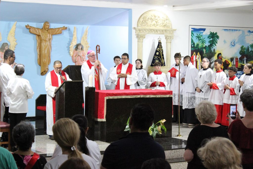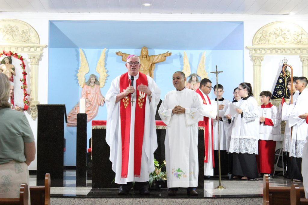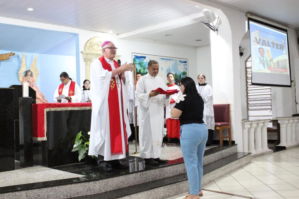 O padre Valter Diniz tomou posse, na sexta-feira (6 de fevereiro), como pároco da Paróquia São Sebastião, Decanato Norte. A Missa foi presidida pelo arcebispo dom Geremias Steinmetz e contou com a presença da comunidade paroquial.