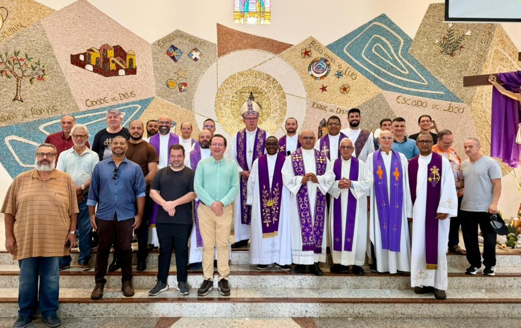 Após a Missa os padres realizaram uma confraternização de ação de graças ao dom Geremias na cidade de Primeiro de Maio – PR. Um momento de fraternidade, encontro e alegria do arcebispo com os padres.