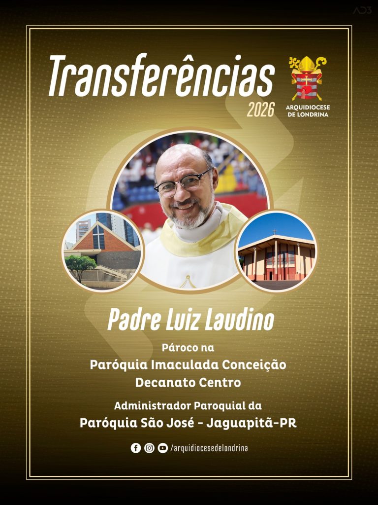 O arcebispo dom Geremias Steinmetz anunciou neste sábado, 28 de fevereiro, o nome do novo administrador paroquial da Paróquia São José, de Jaguapitã (PR), Decanato Rolândia: padre Luiz Laudino.
