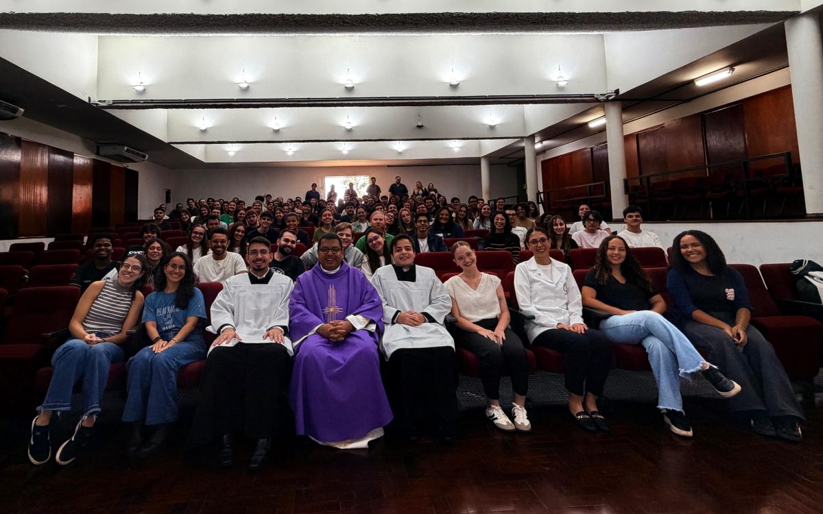 Cerca de 100 universitários participaram da Missa de abertura do ano letivo. Essa grande participação é sinal de muita esperança. Em sua homilia o padre destacou a fidelidade e a perseverança de Jesus em sua missão salvadora. “Quando estamos em ambientes e situações difíceis, precisamos cultivar no coração a mesma perseverança de Jesus na busca por um mundo melhor, na busca pela santidade”, disse o padre.