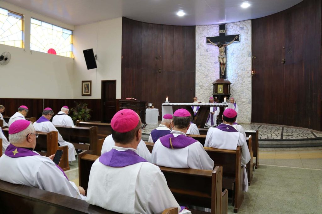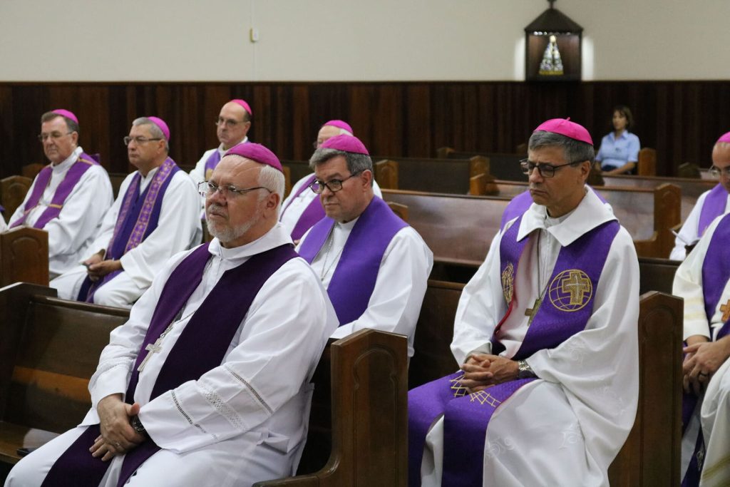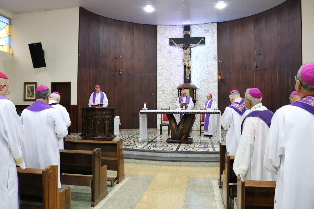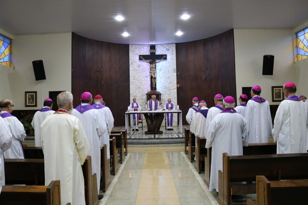 Bispos e arcebispos das 18 arqui/dioceses do Regional e das duas eparquias ucranianas participam do encontro, no Centro de Espiritualidade Passionista