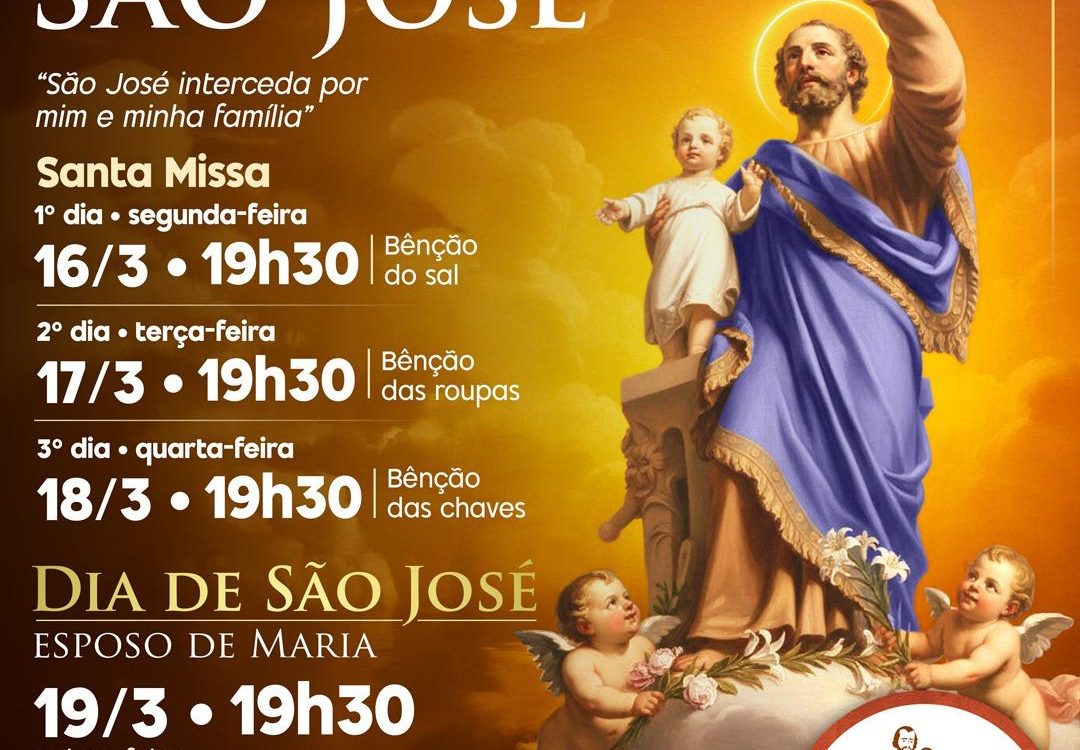 O tríduo é uma preparação espiritual dos devotos para a solenidade do dia 19 de março, dia de São José. Nessa data, próxima quinta feira, a solene celebração será realizada as 19h30 com a consagração a São José e entrega das medalhas do santo. Todos os fiéis devotos e famílias estão convidados!