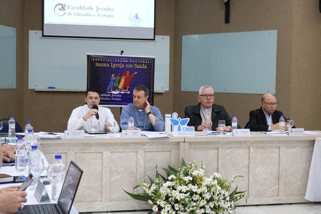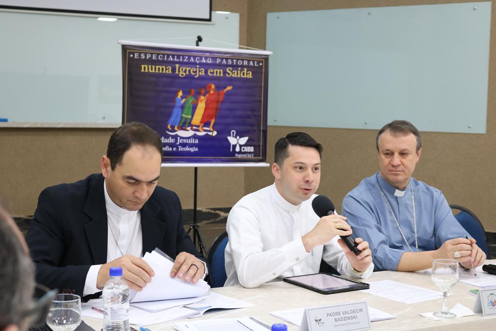 Na sequência, os bispos receberam a participação do padre Wesley Almeida dos Santos, que apresentou o novo curso de especialização em Teologia Pastoral numa Igreja em Saída, uma iniciativa do Regional Sul 2 em parceria com a Faculdade Jesuíta de Filosofia e Teologia (FAJE), de Belo Horizonte.