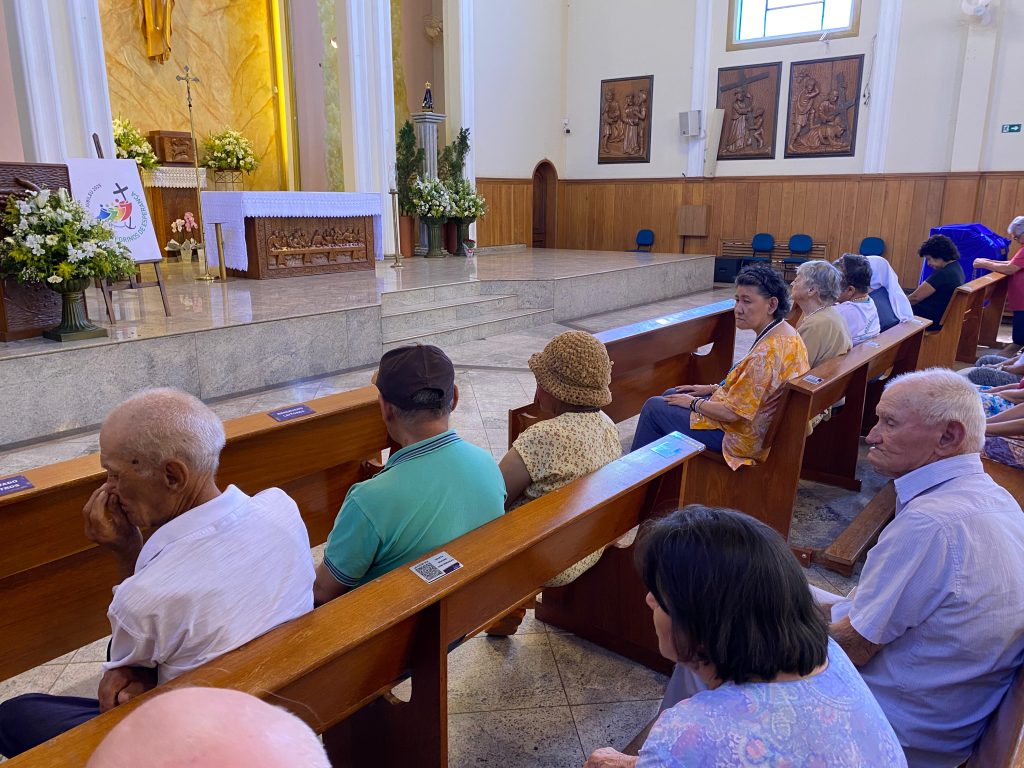 O Santuário de Nossa Senhora Aparecida de Londrina da Vila Nova recebeu nessa terça-feira, 23 de setembro, cerca de 40 idosos do Lar Padre Leone, de Ibiporã em peregrinação para celebrar a Semana Nacional do Idoso, que se inicia no dia 25 de setembro e vai até 1º de outubro. A peregrinação foi oportunidade para que alguns residentes da instituição conhecessem o Santuário, além de rezarem um terço. O grupo veio a Londrina com um ônibus cedido pelo serviço social de Ibiporã.