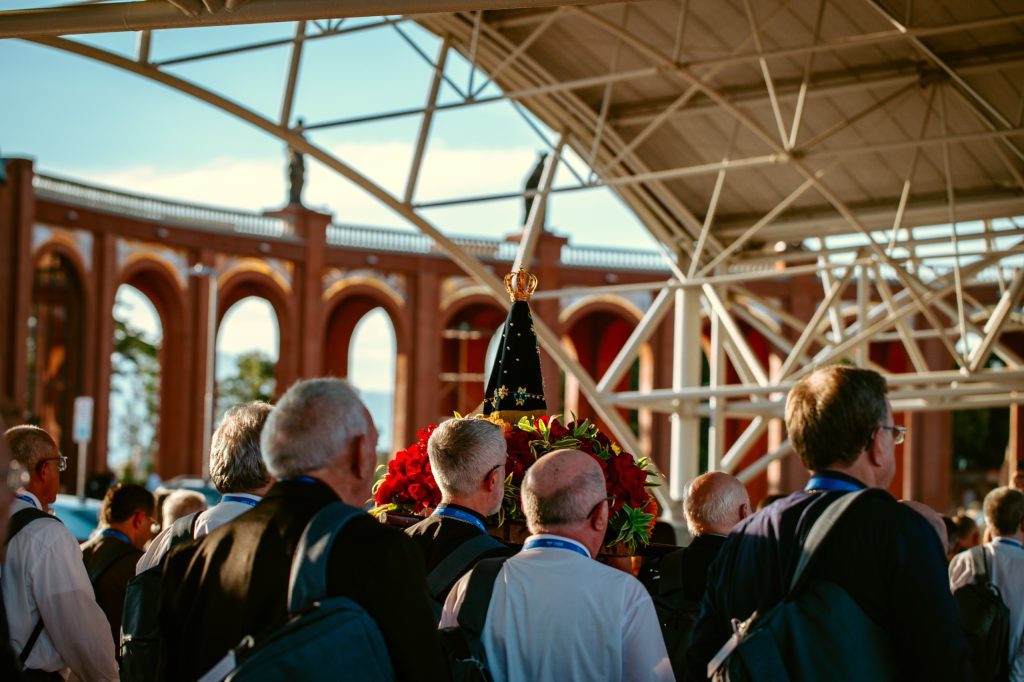 Com os corações inflamados e os pés a caminho, os bispos do Brasil concluíram o retiro espiritual do segundo dia da 62ª Assembleia Geral da Conferência Nacional dos Bispos do Brasil (CNBB), 16 de abril, com a procissão até a Basílica do Santuário Nacional de Aparecida.