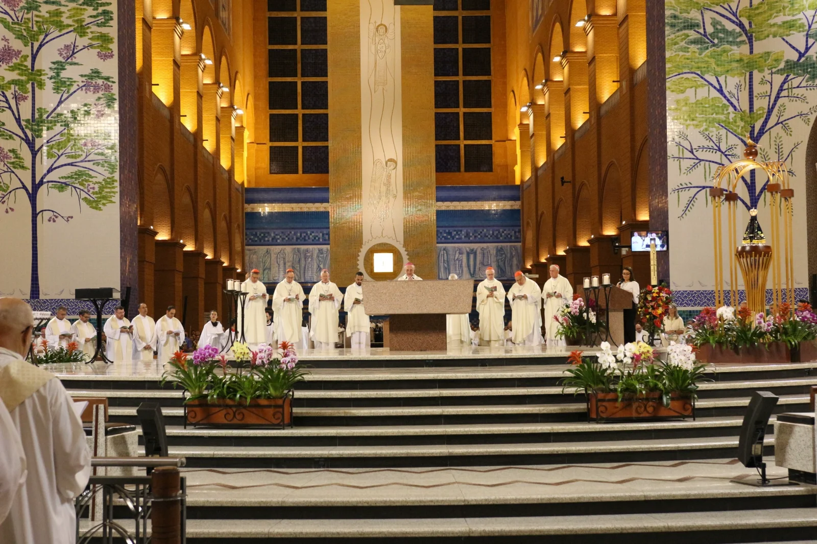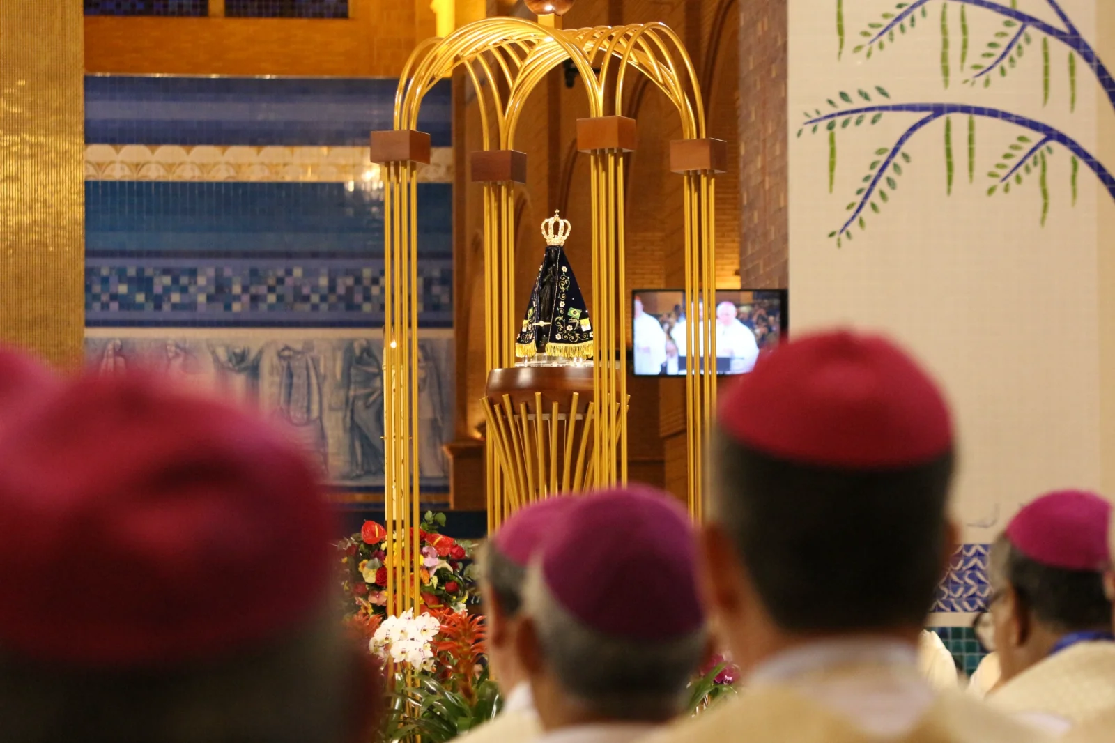 Os bispos se revezaram para levar o andor com a imagem de Nossa Senhora Aparecida. Em suas intenções de oração o pedido pela assembleia, pelas novas diretrizes, pelo Papa, pela paz, pelas famílias, pelas vocações. Invocando os padroeiros das dioceses do país, cada bispo pode também rezar pelos seus diocesanos.