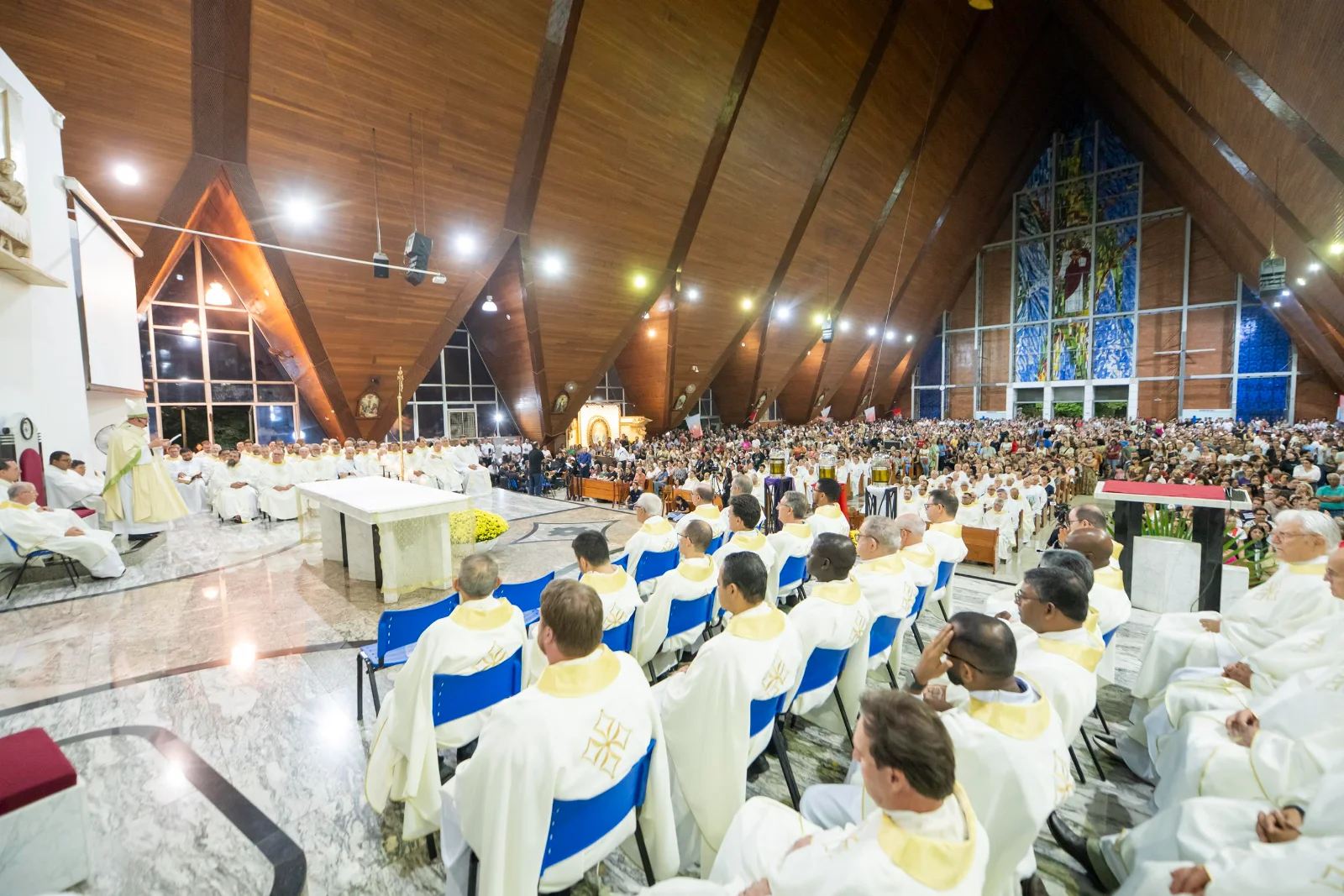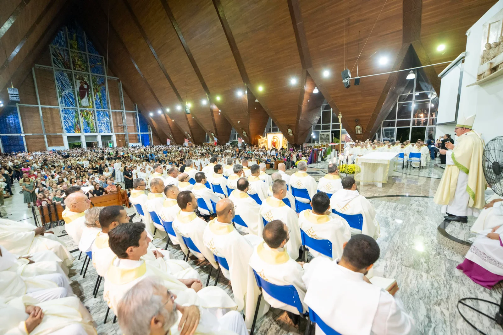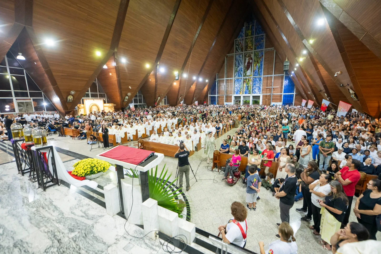 A Catedral Metropolitana de Londrina viveu um momento de unidade e profunda comunhão na noite de terça-feira (31). A igreja-mãe da Arquidiocese acolheu a Missa dos Santos Óleos, reunindo milhares de fiéis de toda a região, além de seminaristas, religiosas, leigos engajados e todo o clero, que durante a celebração renovou as promessas sacerdotais.