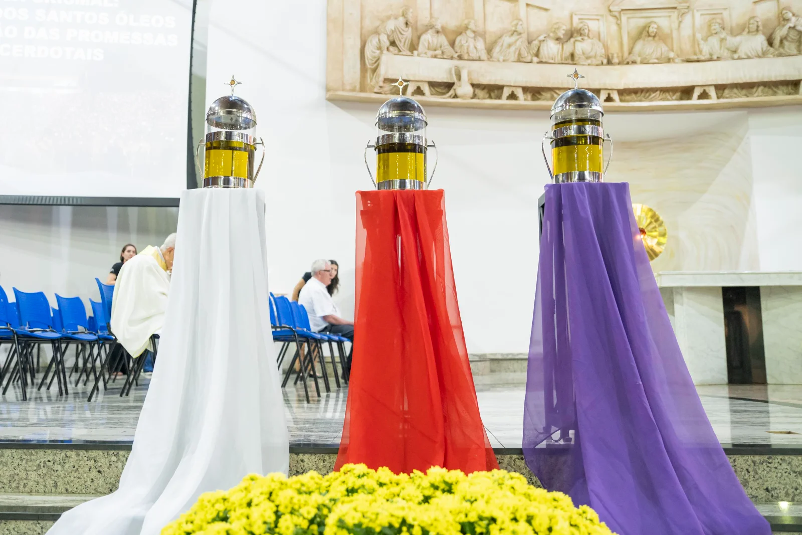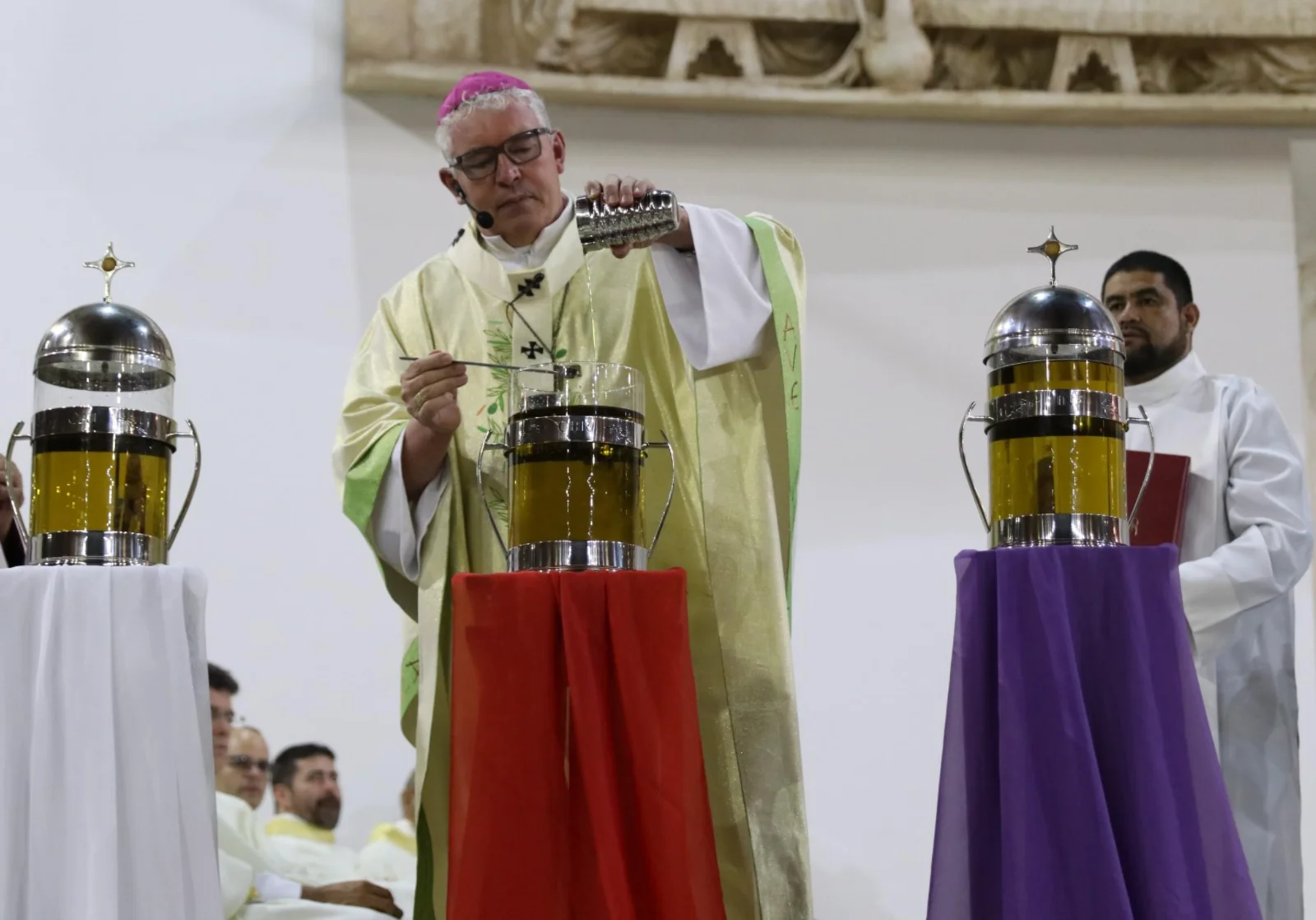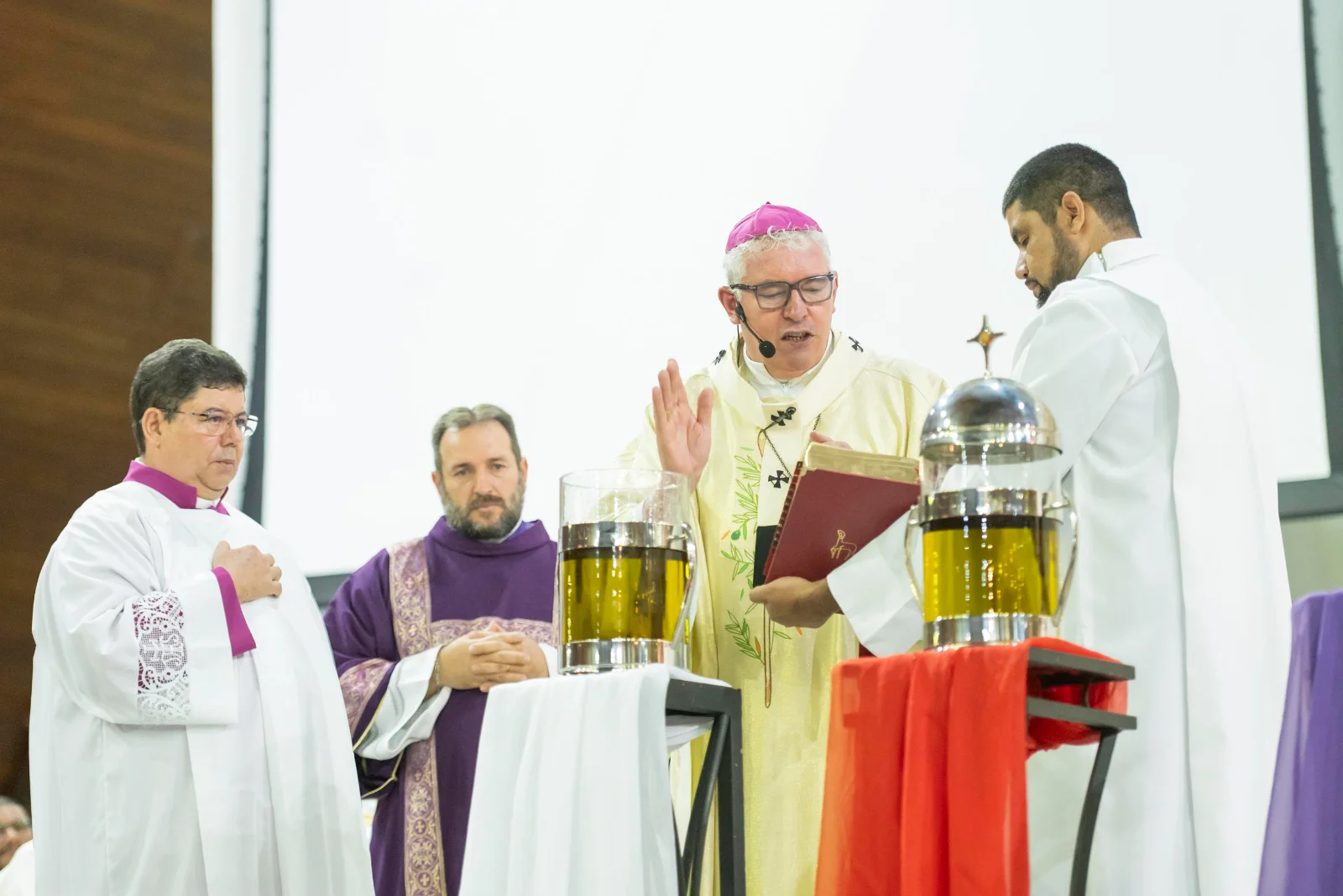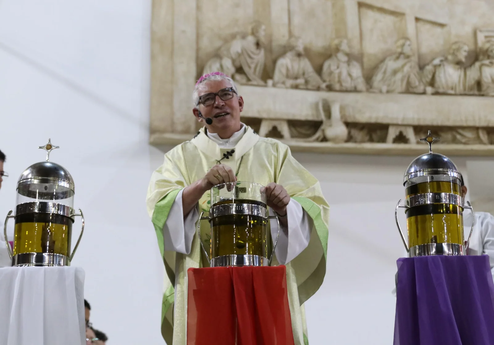 Durante a celebração, foram abençoados e consagrado os óleos que acompanharão a vida sacramental das paróquias ao longo do ano