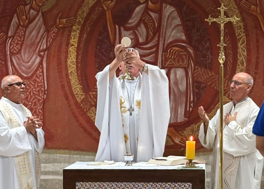 Na celebração eucarística, Dom Geremias destacou a importância de reconhecer a presença de Cristo que caminha conosco, como caminhou junto aos discípulos de Emaús, e que se revela sobretudo ao “partir do pão” (Lc 24, 30-31), no mistério eucarístico.