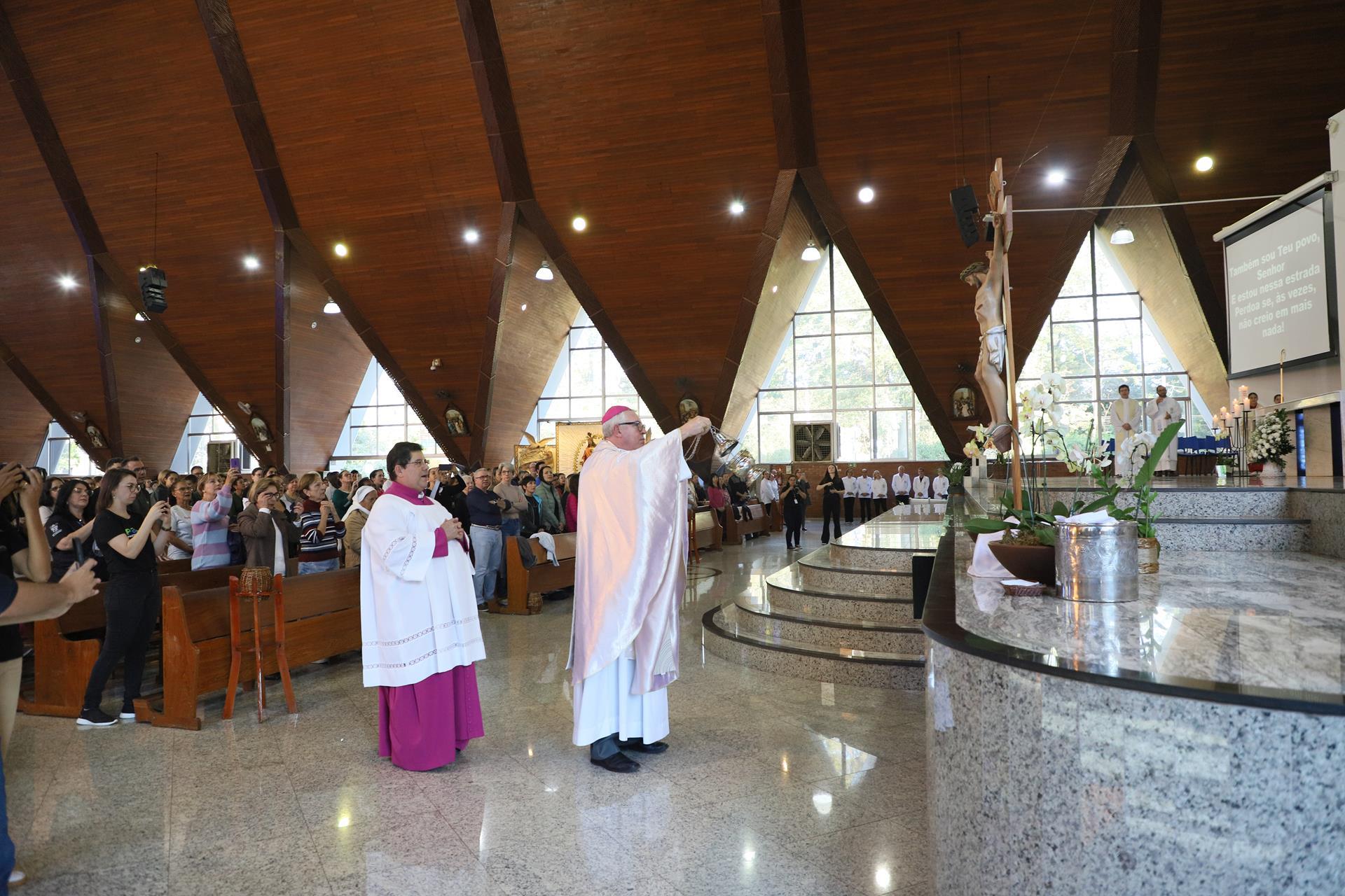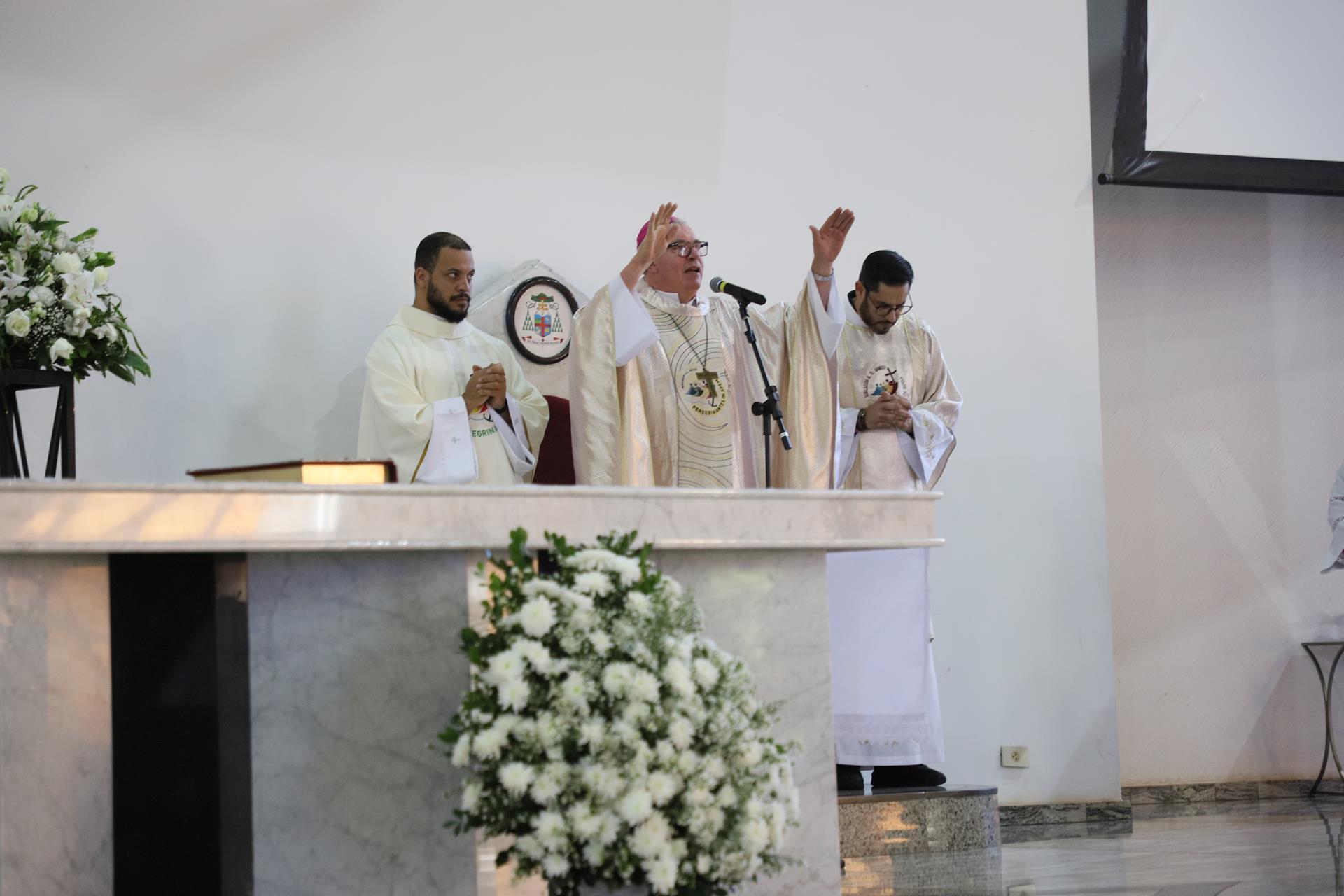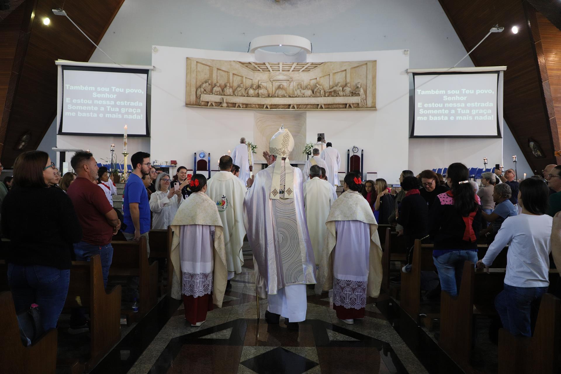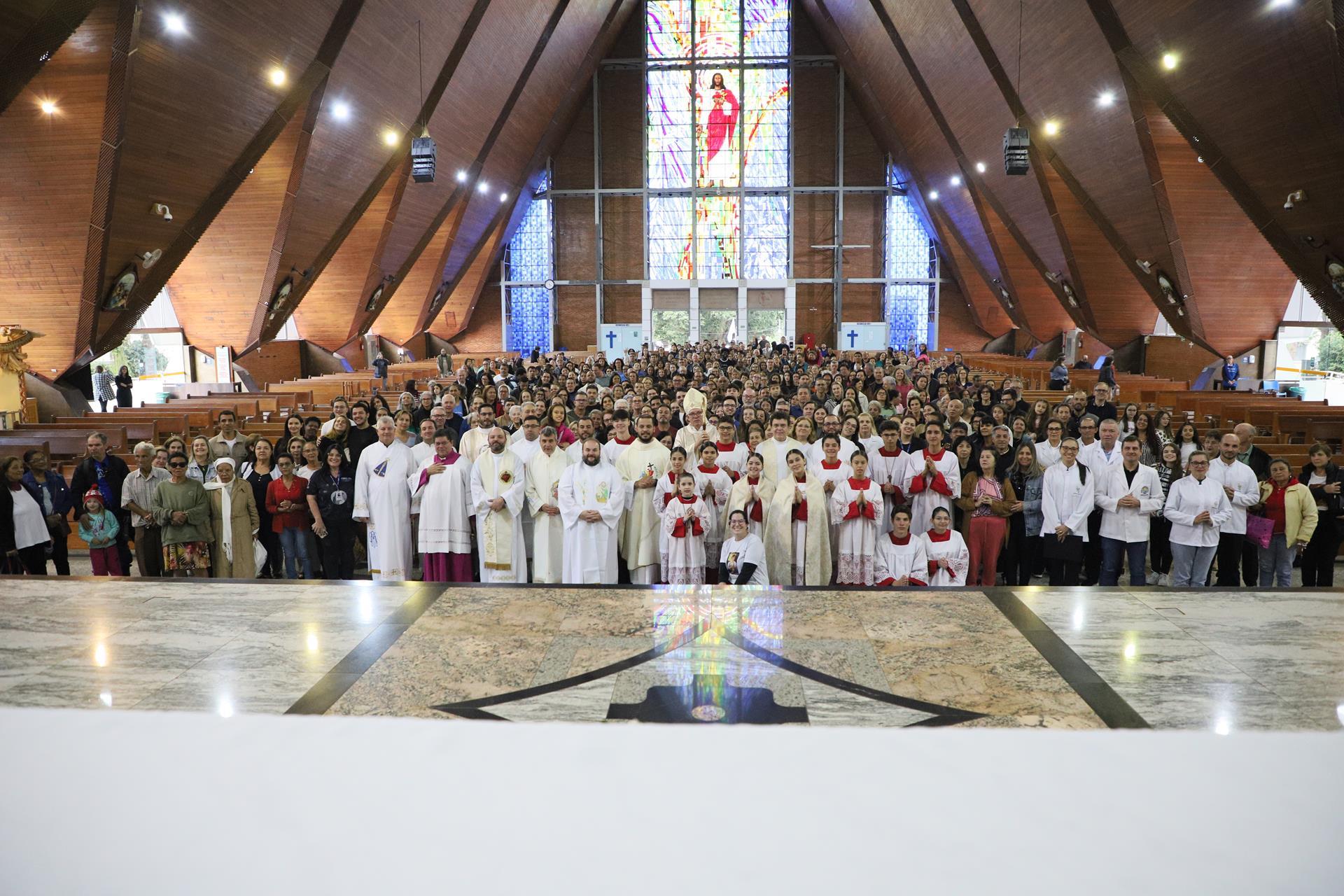 Chegando na Catedral, os fiéis participaram da Santa Missa presidida pelo arcebispo dom Geremias Steinmetz e concelebrada pelos padres do decanato.