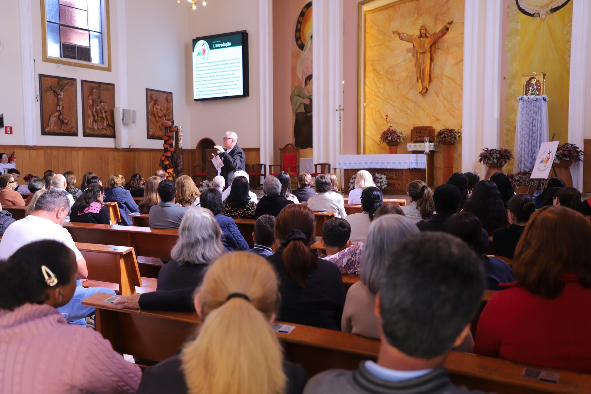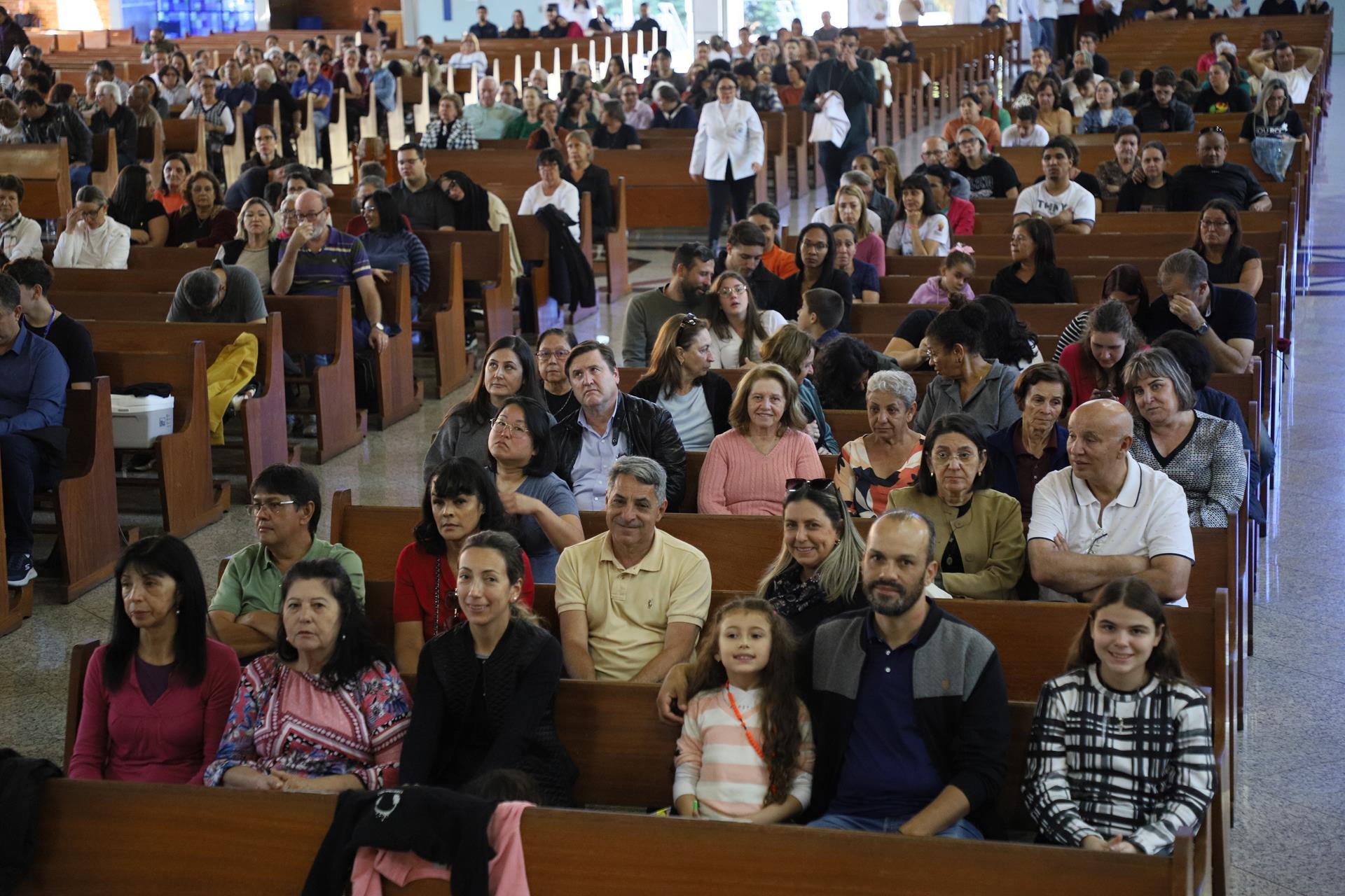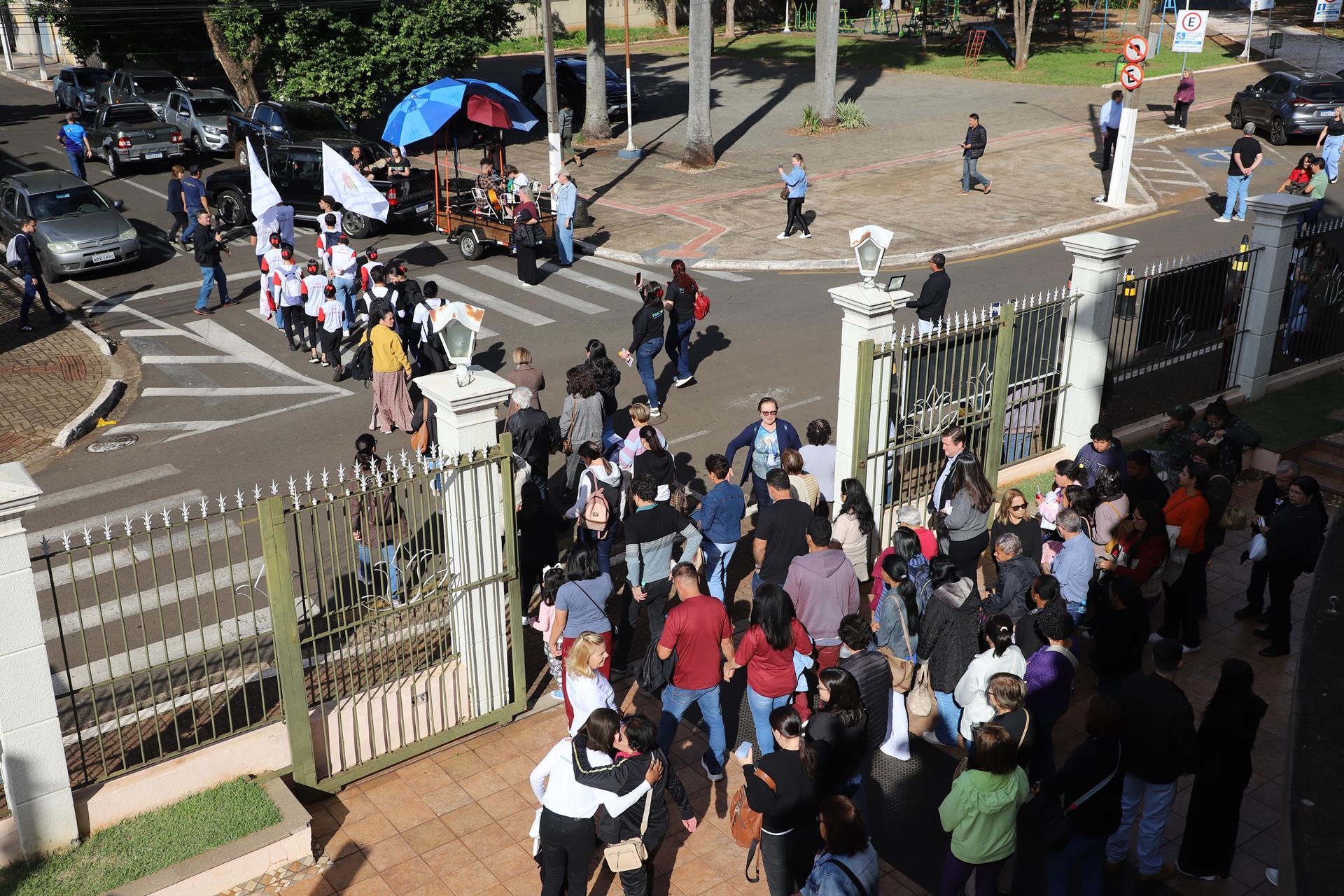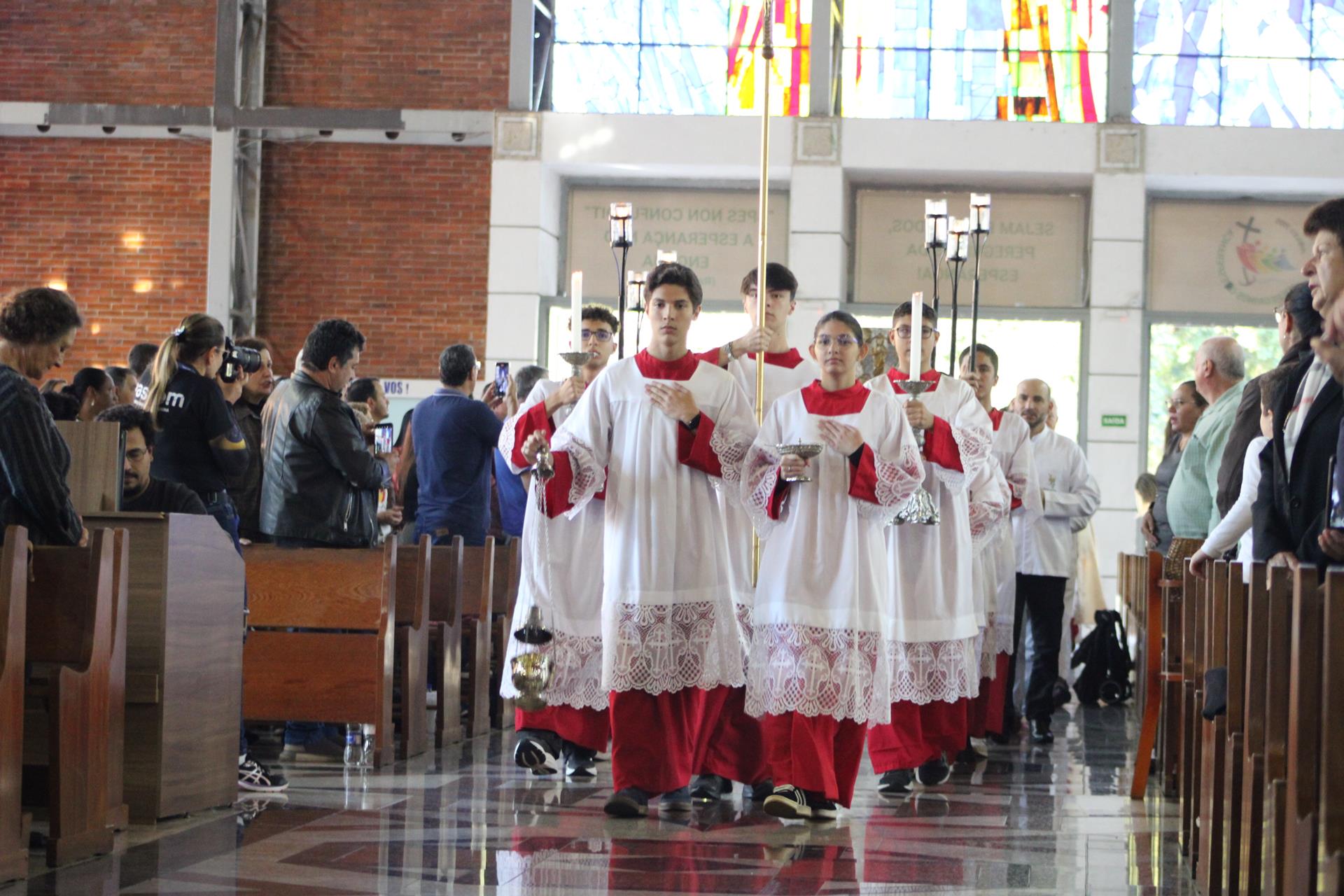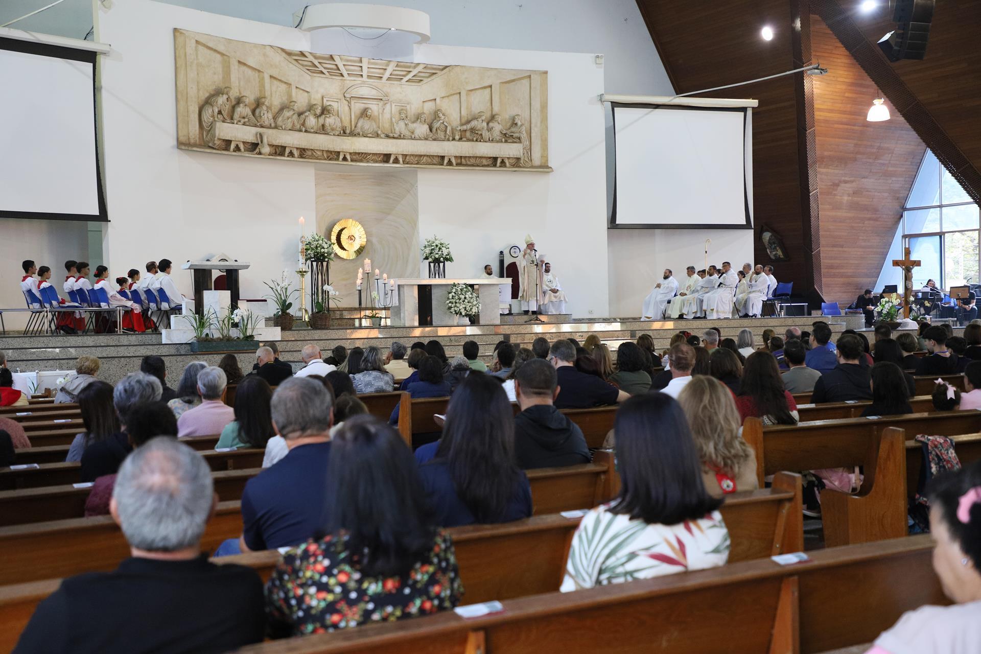 Chegando na Catedral, os fiéis participaram da Santa Missa presidida pelo arcebispo dom Geremias Steinmetz e concelebrada pelos padres do decanato.