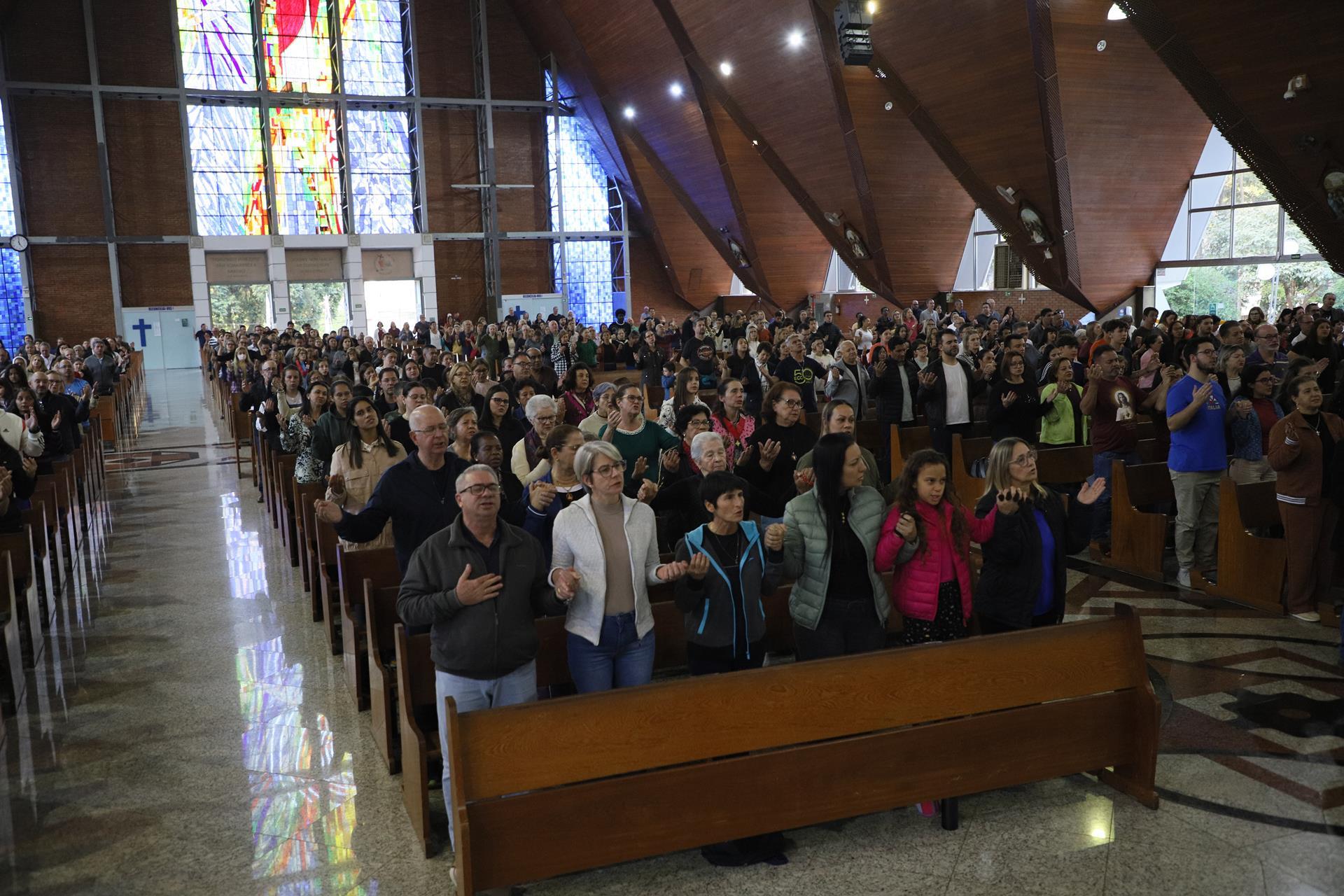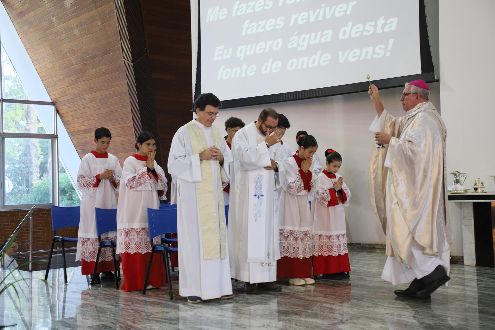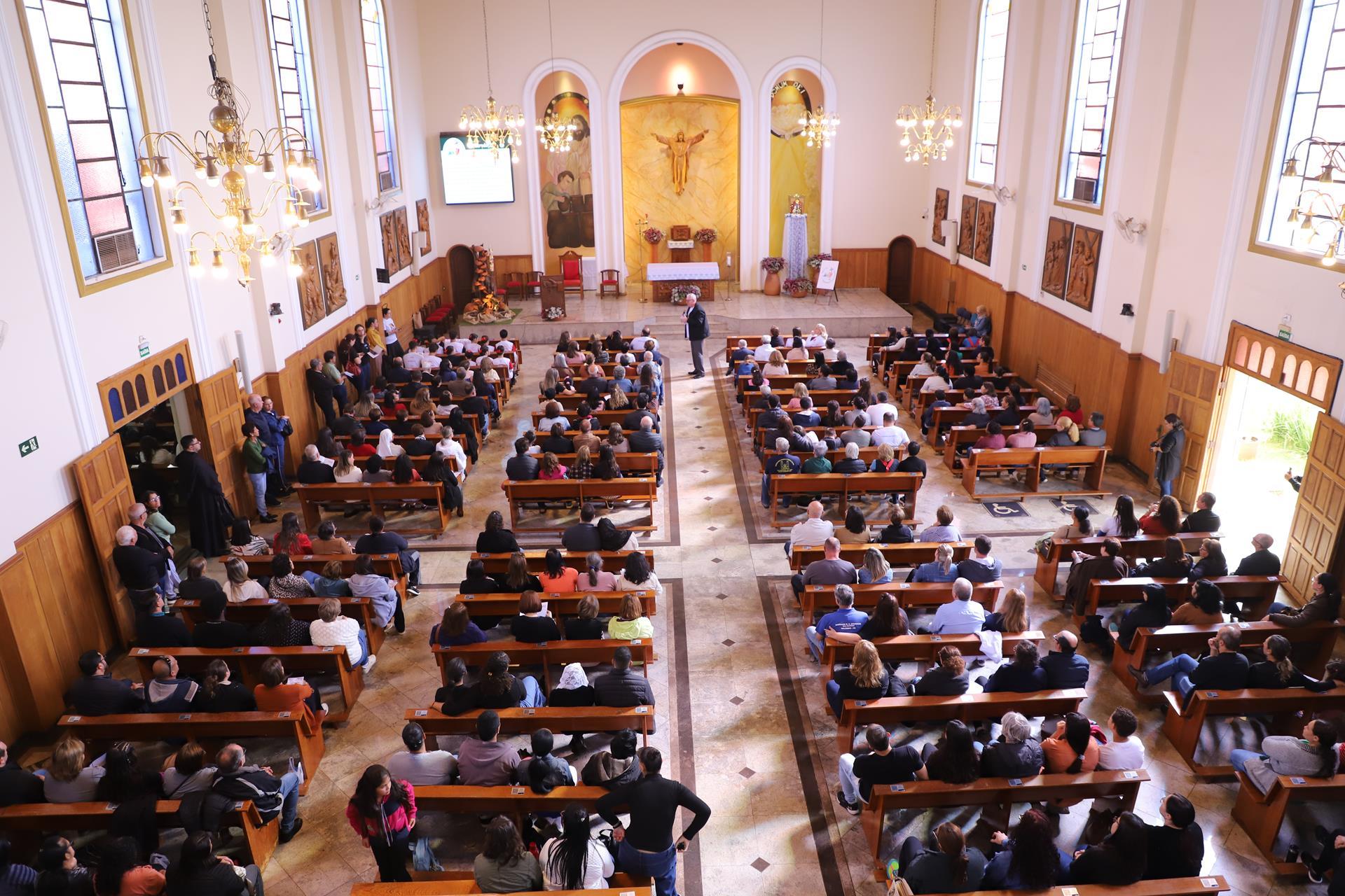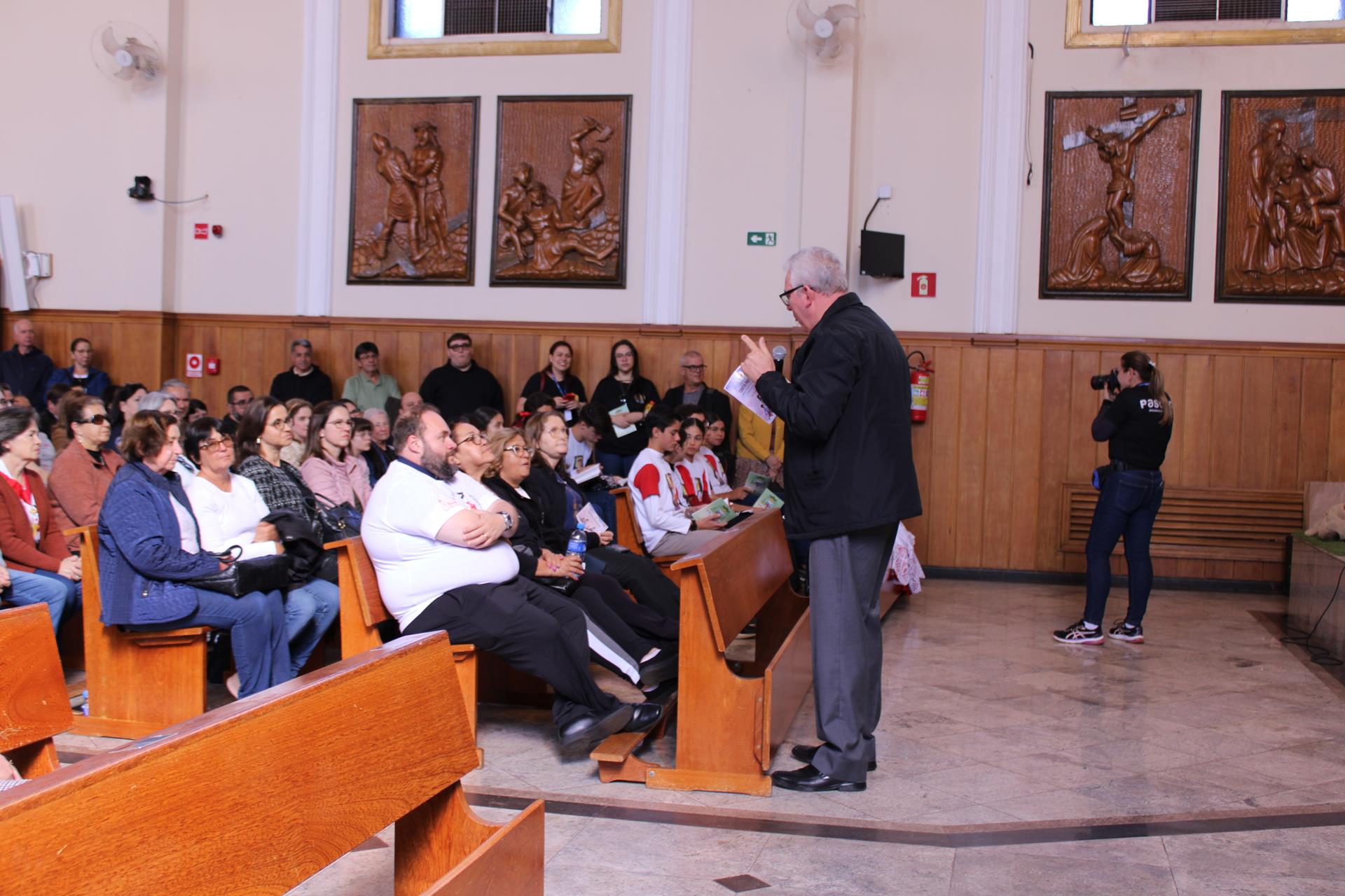 Chegando na Catedral, os fiéis participaram da Santa Missa presidida pelo arcebispo dom Geremias Steinmetz e concelebrada pelos padres do decanato.